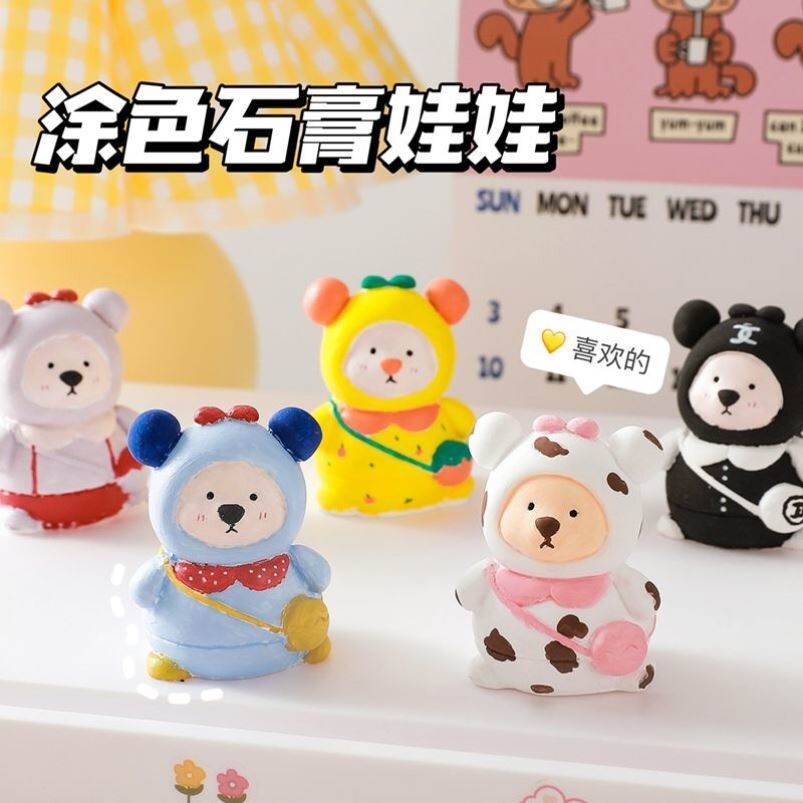 石膏娃娃涂色白胚小号背包熊网红手工diy上色涂鸦小熊搪胶款模型热门设计联盟服务商