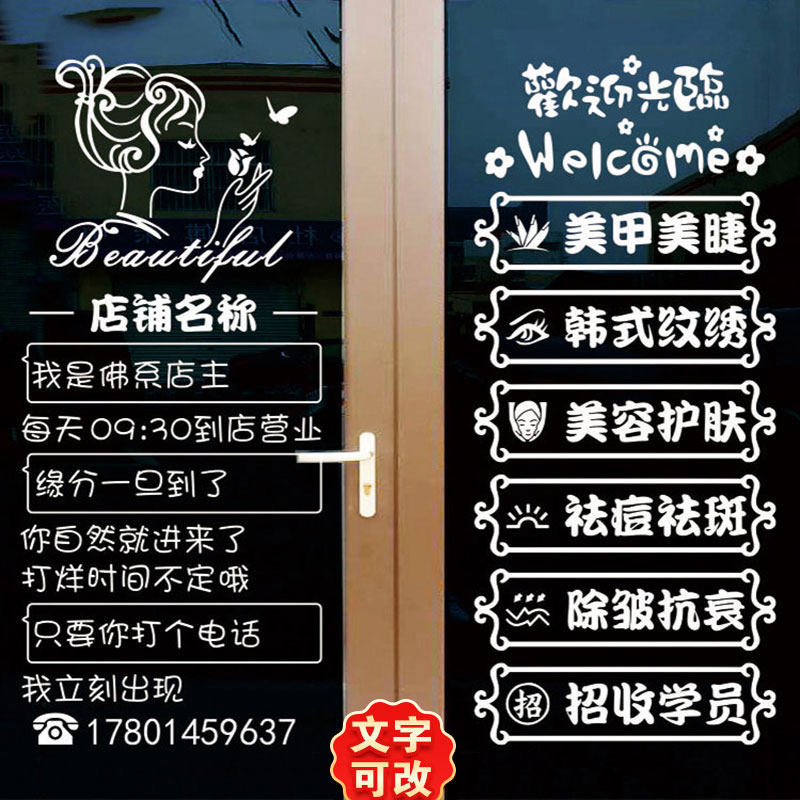 美容院美甲美睫店玻璃门贴纸项目 创意广告文字橱窗装饰墙贴镂空热门设计联盟服务商