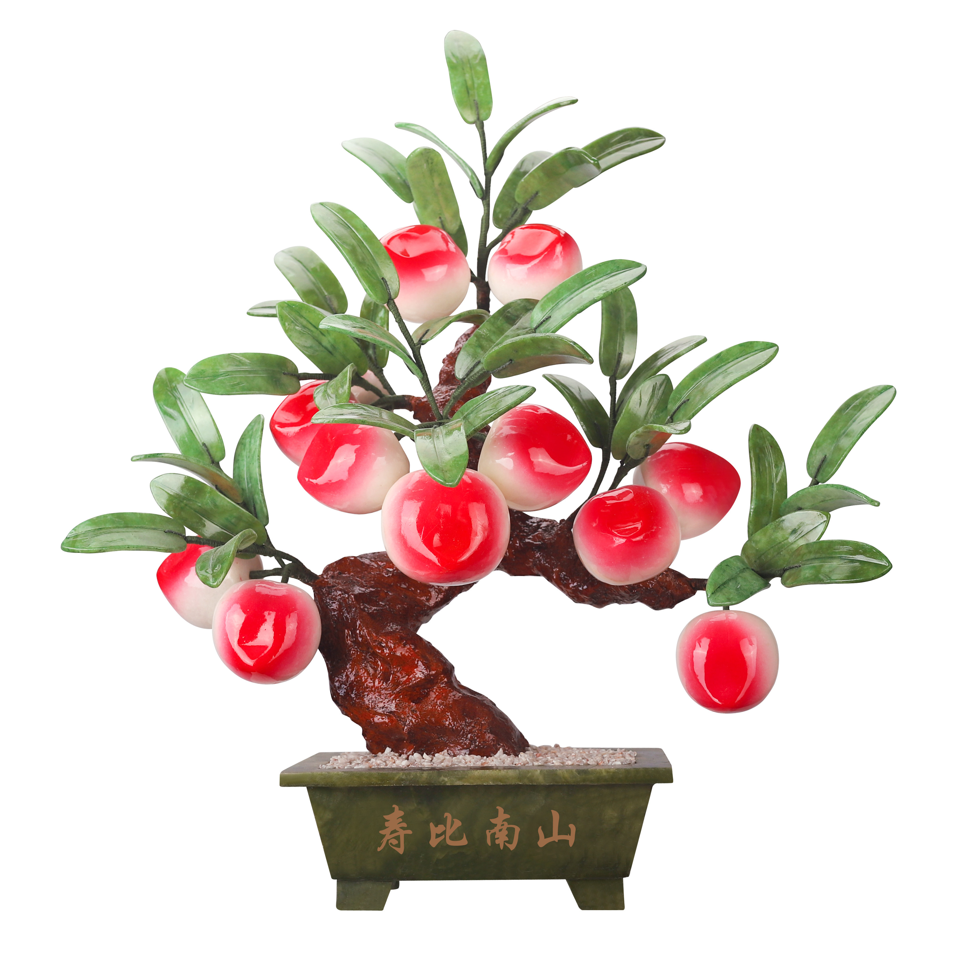 玉石盆景盘栽仙桃树玉器家居装饰品客厅玉石蟠桃工艺品寿桃摆件热门设计联盟服务商