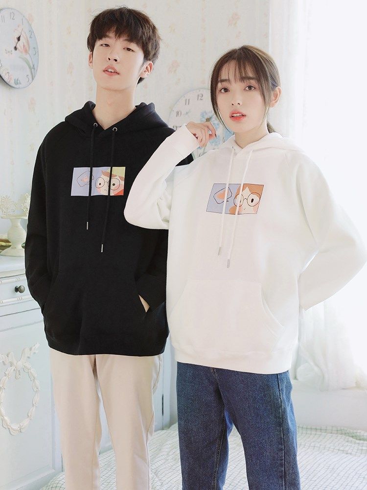 原创设计小众情侣装男女上衣2021秋冬加绒加厚帽衫连帽情侣卫衣热门设计联盟服务商