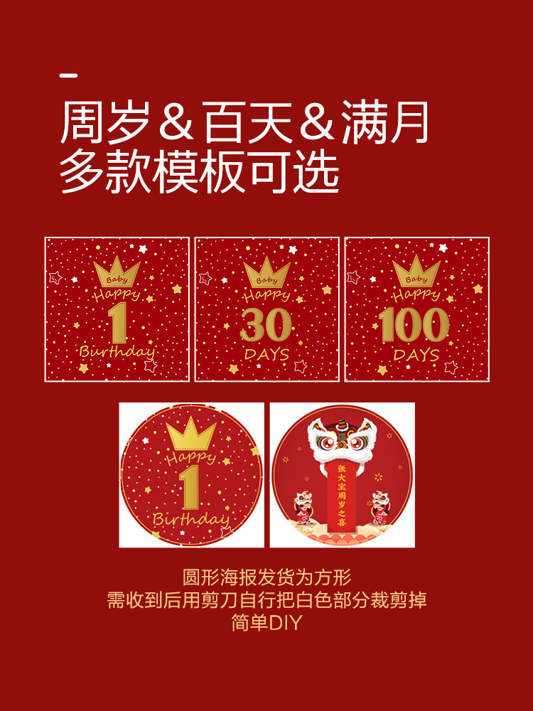 宝宝一周岁生日抓周布置海报装饰气球背景墙男女孩儿童百日满月宴热门设计联盟服务商