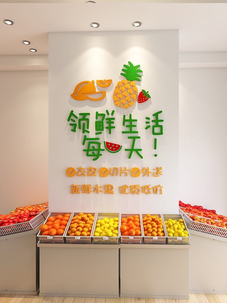 水果3d装饰用品文字墙贴纸画创意广告立体蔬菜店铺布置墙面U装修热门设计联盟服务商