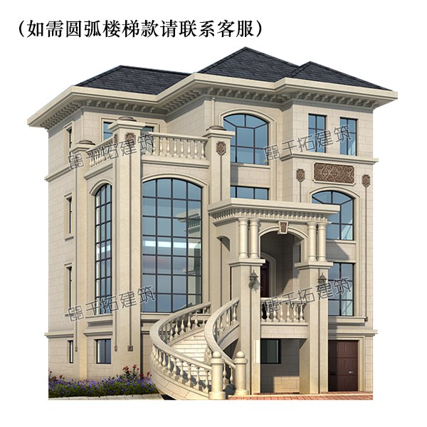 欧式三层别墅图纸农村自建房三层半带车库房屋设计施工效果图全套热门设计联盟服务商