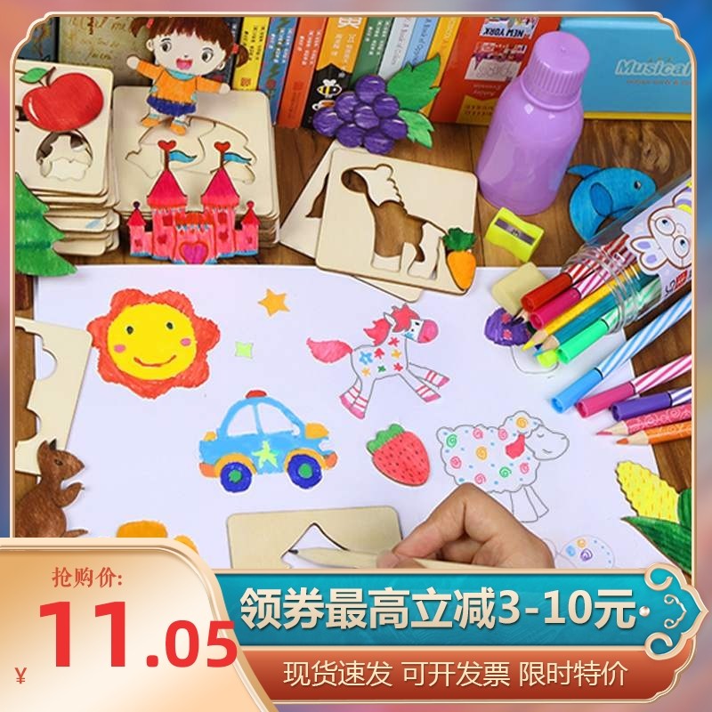 木质儿童礼物幼儿学画画工具涂鸦涂色绘画模板套装玩具男女孩热门设计联盟服务商