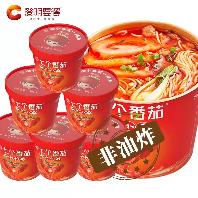七个番茄茄汁小面125g6桶装酱汤料网红速食非油炸番茄味方便面桶装整箱热门设计联盟服务商