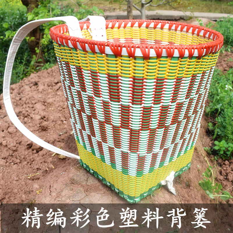 包邮纯手工编织塑料竹背篓买菜采摘茶收纳舞蹈影视道具成人背筐。热门设计联盟服务商