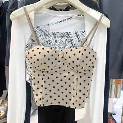 秋冬设计感小o众外穿短款无袖上衣网纱波点吊带抹胸内搭打底背心热门设计联盟服务商