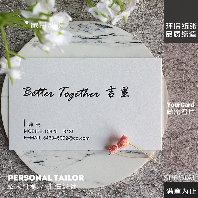 蒙特利棉白名片印刷 手写签名定制设计制作有色压凹工艺热门设计联盟服务商