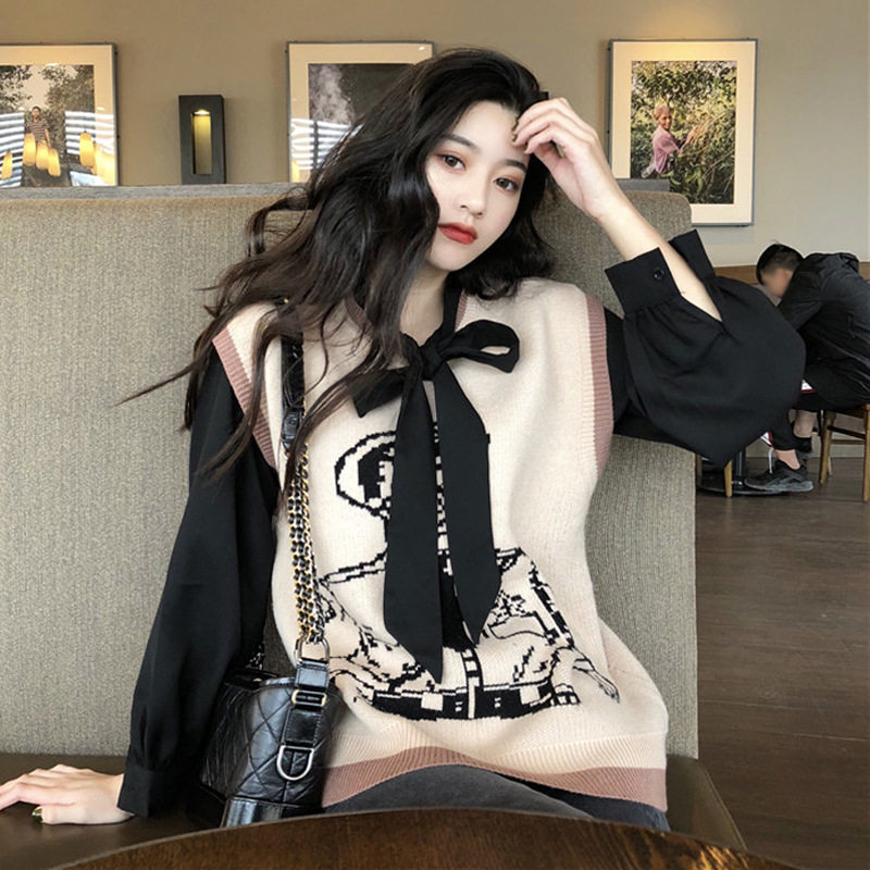 法式复古衬衣女针织毛衣马甲设计感小众港味秋冬洋气时尚两件套装热门设计联盟服务商