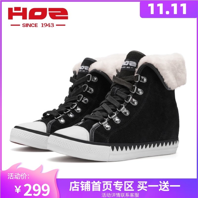 HOZ后街 加绒加厚内增高女鞋小众设计感高帮翻毛百搭短靴女休闲鞋热门设计联盟服务商