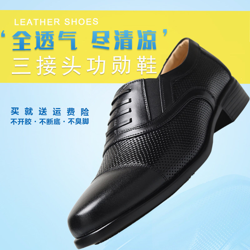 夏季男士尖头皮鞋透气沥鞋商务正装三接头皮鞋真皮网眼镂空皮鞋热门设计联盟服务商