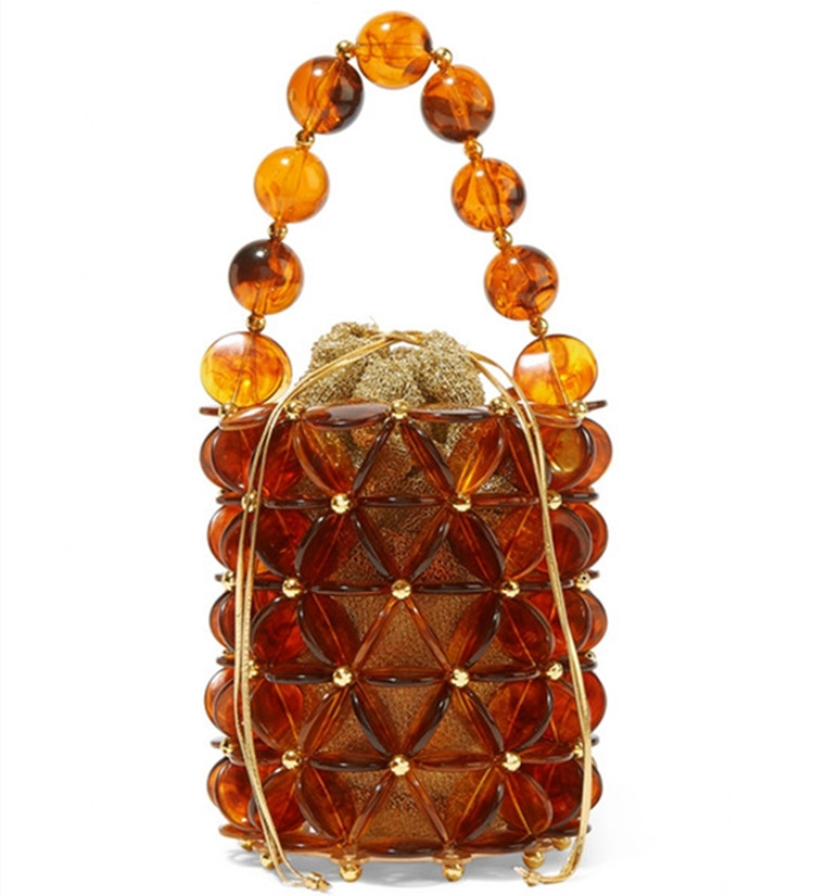小众设计透明水晶 亚克力花朵 手工编织 手提 水桶包 mini包热门设计联盟服务商