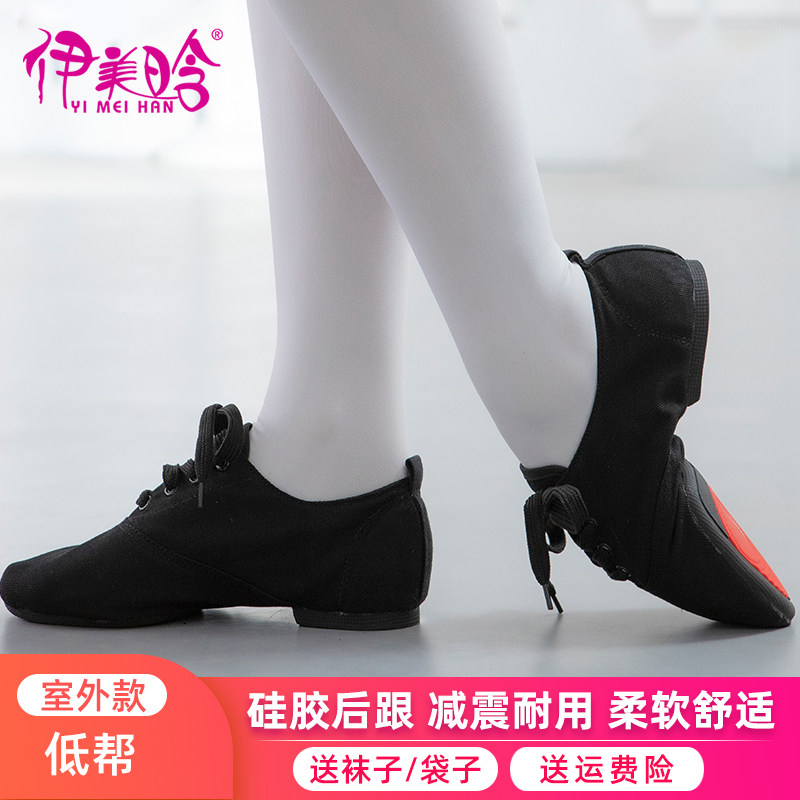 黑色低帮爵士靴子室外带跟舞蹈鞋女软底练功鞋布儿童成人男爵士鞋热门设计联盟服务商