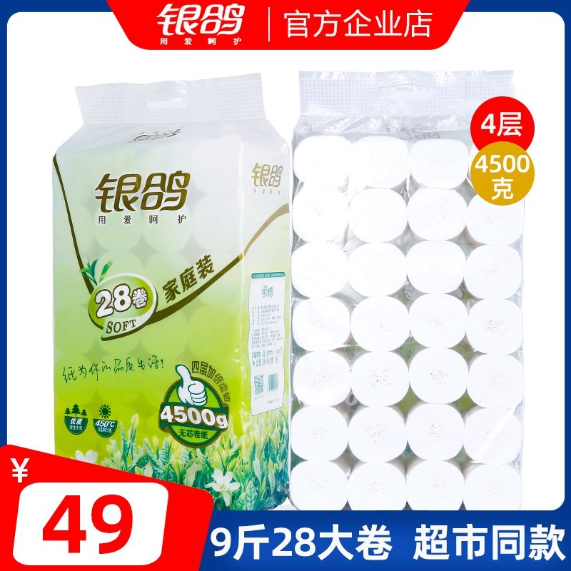 银鸽28卷卫生纸无芯卷纸家用实惠装超市4层加厚9斤卫生间厕纸大卷热门设计联盟服务商