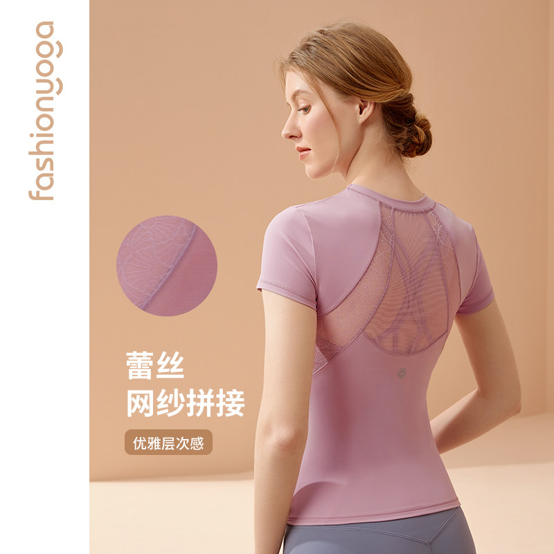 凡圣瑜伽短袖T恤女健身运动网纱美背透气叠穿修身瑜伽服FL11306热门设计联盟服务商