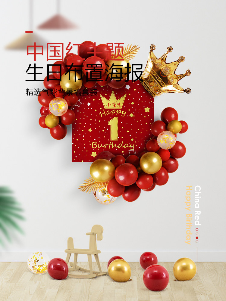 宝宝一周岁生日抓周布置海报装饰气球背景墙男女孩儿童百日满月宴热门设计联盟服务商