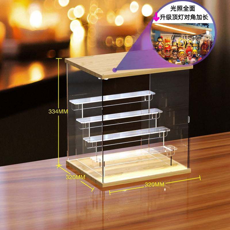 亚力克竹纹多层收纳盒展示架可叠加盲盒展示柜透明手办娃娃防尘盒热门设计联盟服务商
